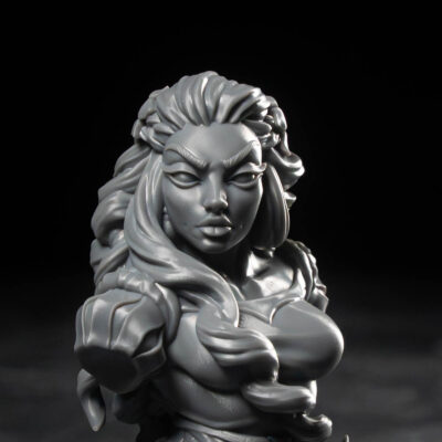 A high-detail 3D printed bust miniature designed for display. With sharp facial features, expressive sculpting, and a smooth finish, it’s the perfect piece for collectors and painters who want a striking showcase bust.