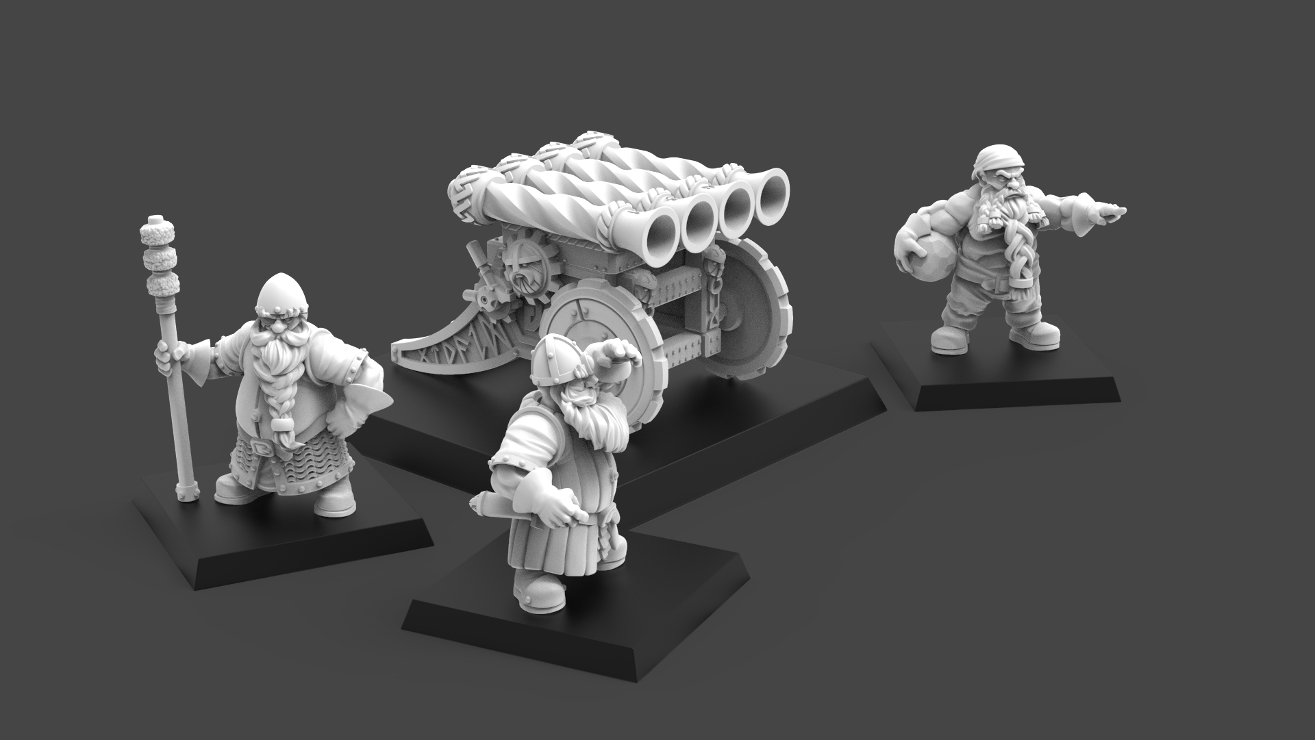 The miniatures in the images of the product are 3D renders. The 3D printed miniature may be slightly different.Â