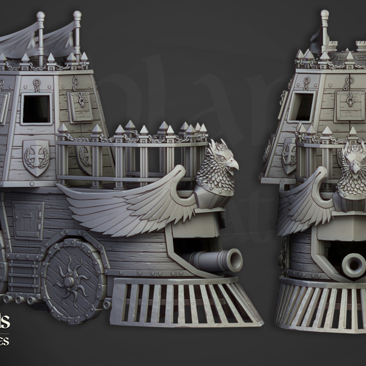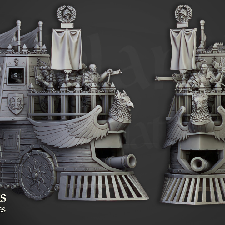 The miniatures in the images of the product are 3D renders. The 3D printed miniature may be slightly different.Â