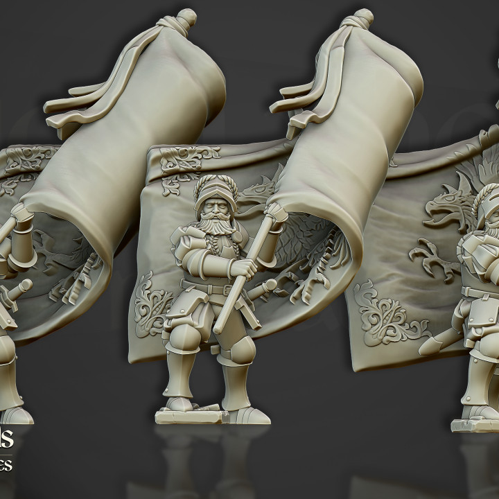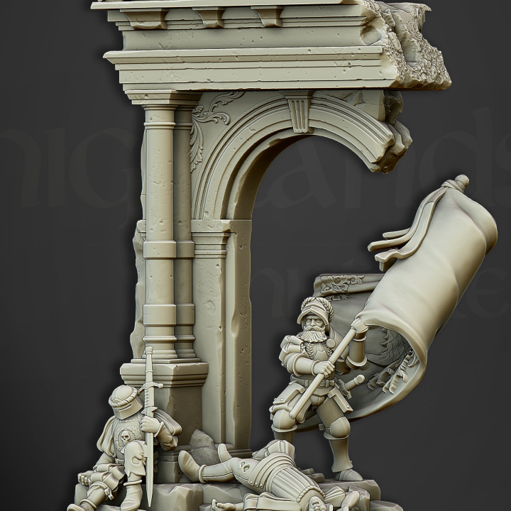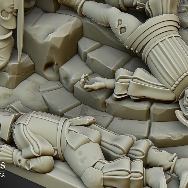 The miniatures in the images of the product are 3D renders. The 3D printed miniature may be slightly different.Â
